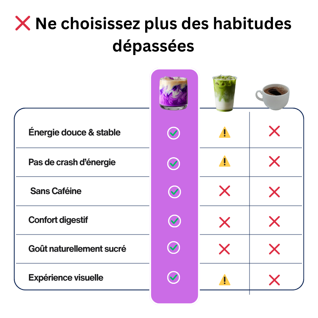 J’ai testé le café, le matcha… et l’UBE les surpasse largement. Plus agréable au goût, plus doux, et sans les effets que je n’aimais pas avant.