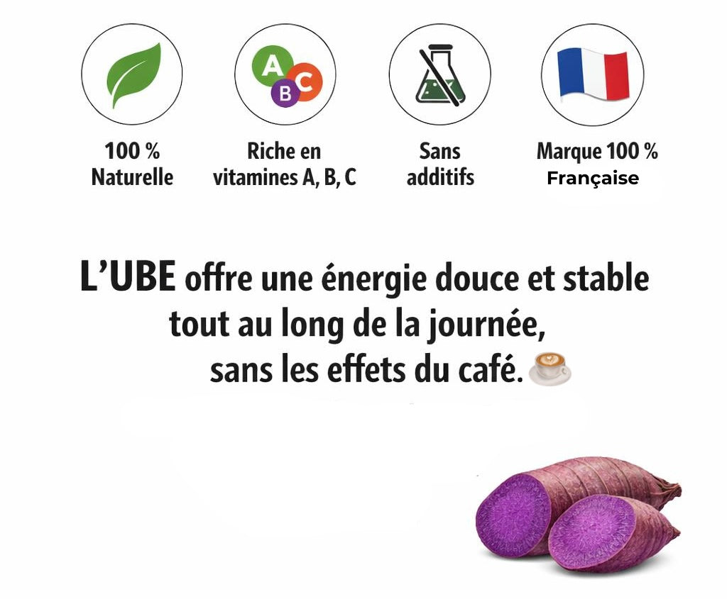 Originaire des Philippines, l’UBE séduit par sa couleur violette intense, son goût naturellement sucré aux notes de vanille et de noisette, et ses bienfaits naturels.